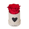 The Mini is one single preserved rose, peony or sunflower in a 2X2 inch round box that fits in the palm of your hand. For Peony and Sunflower minis visit corresponding collections.