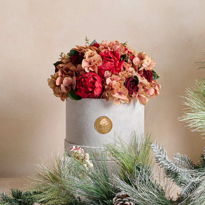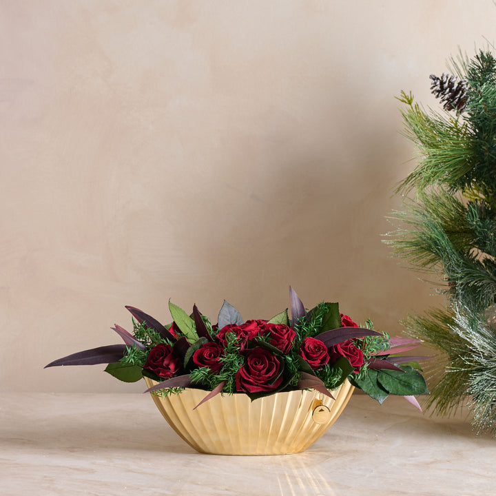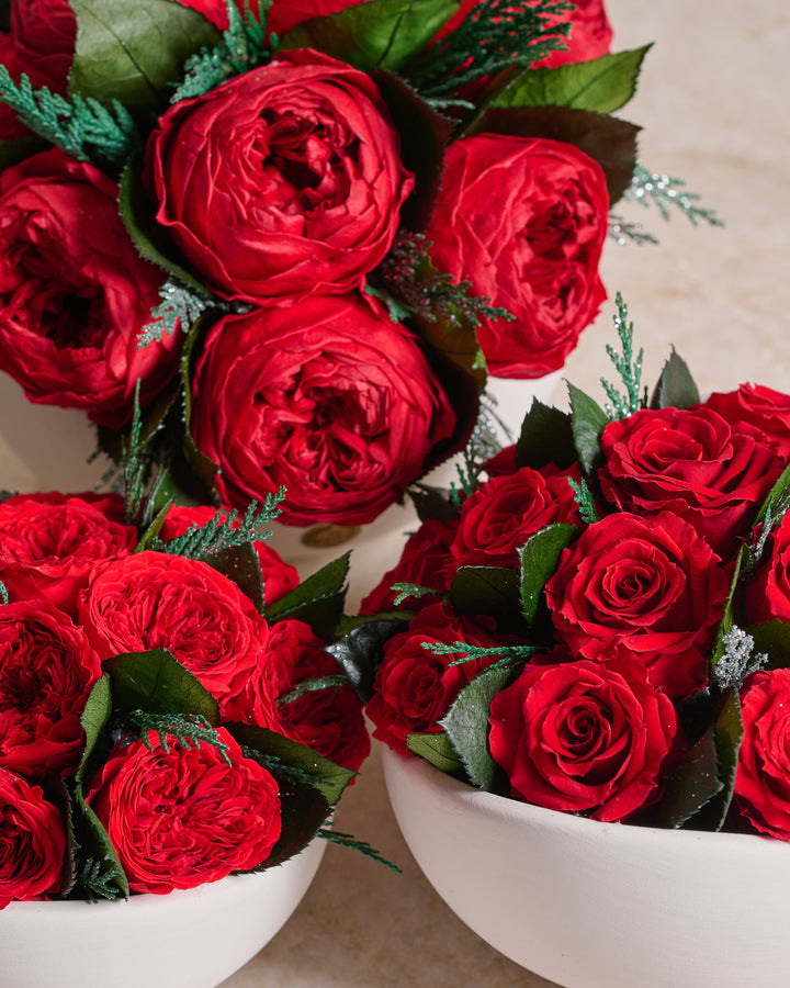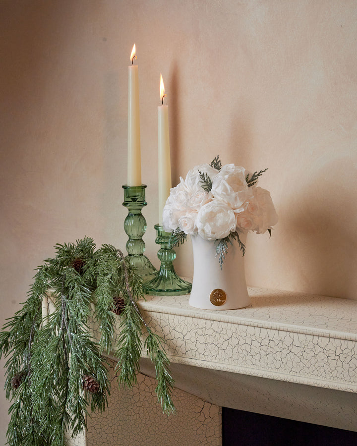 Designed for both intimate gatherings and statement holiday tablescapes, this arrangement transforms any space into a moment of calm, glowing luxury.
